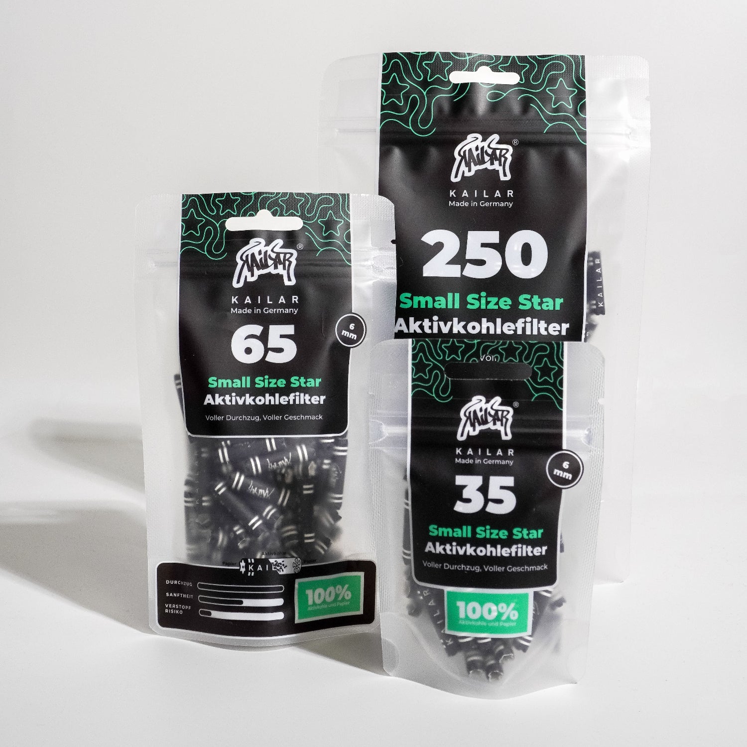 Unser Small Size Star Filter bringt frischen Wind in die Welt der Aktivkohlefilter. Mit seinem schlanken 5,9 mm Durchmesser ist er perfekt fürs Drehen und besonders gut geeignet für Tip-Raucher, die auf Aktivkohle nicht verzichten wollen.